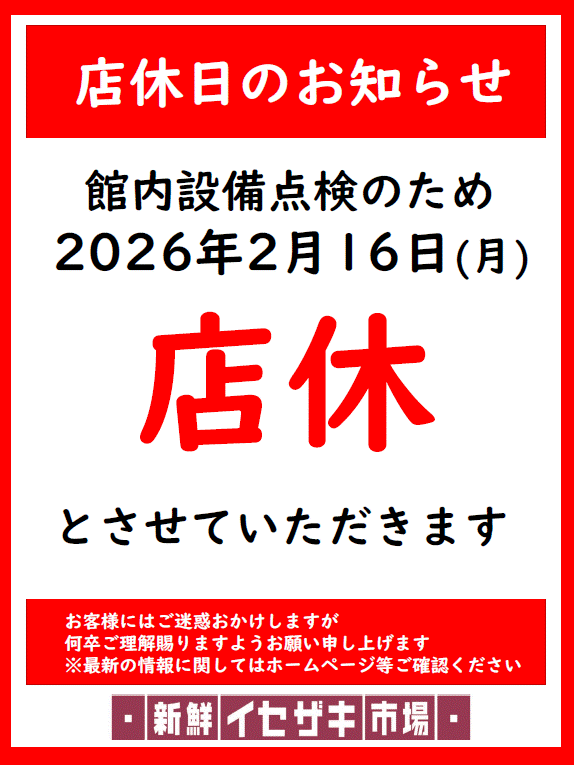 店休日のお知らせ